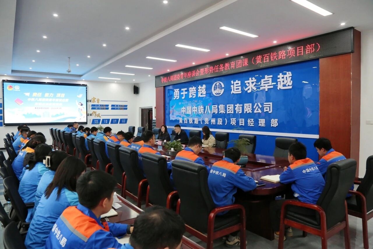 为深入贯彻集团公司2026年党的建设工作会暨党委四届八次全委(扩大)会精神,全面落实“十五五”规划核心部署。3月5日,集团公司党建工作部副部长、团委书记冯云骢到黄百铁路项目,组织开展“责任、能力、项目”青年座谈会暨形势任务教育团课,与项目青年员工面对面交流,倾听心声、共话成长、擘画未来。