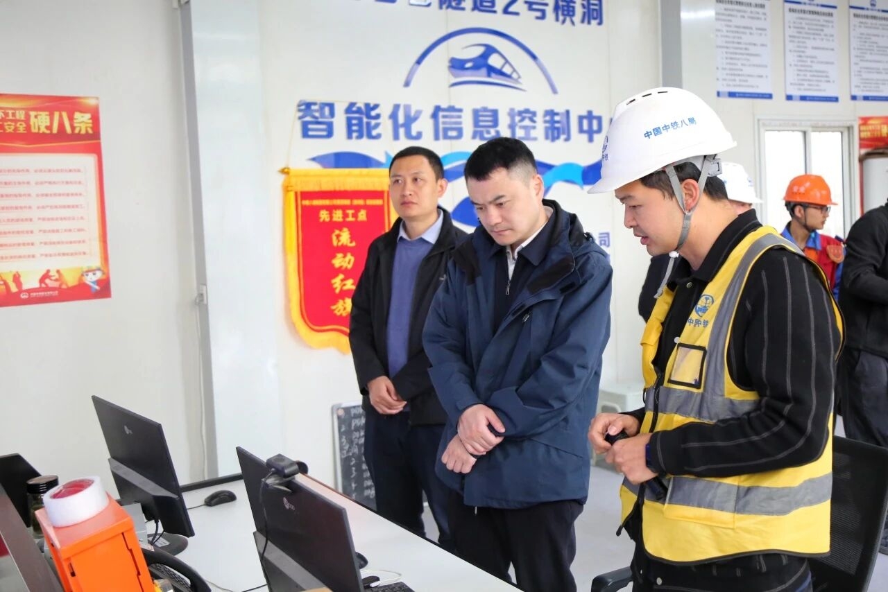 座谈会后,集团公司党建工作部一行前往白石岩隧道二号横洞,实地调研了解项目建设进展及信息化建设推进情况。