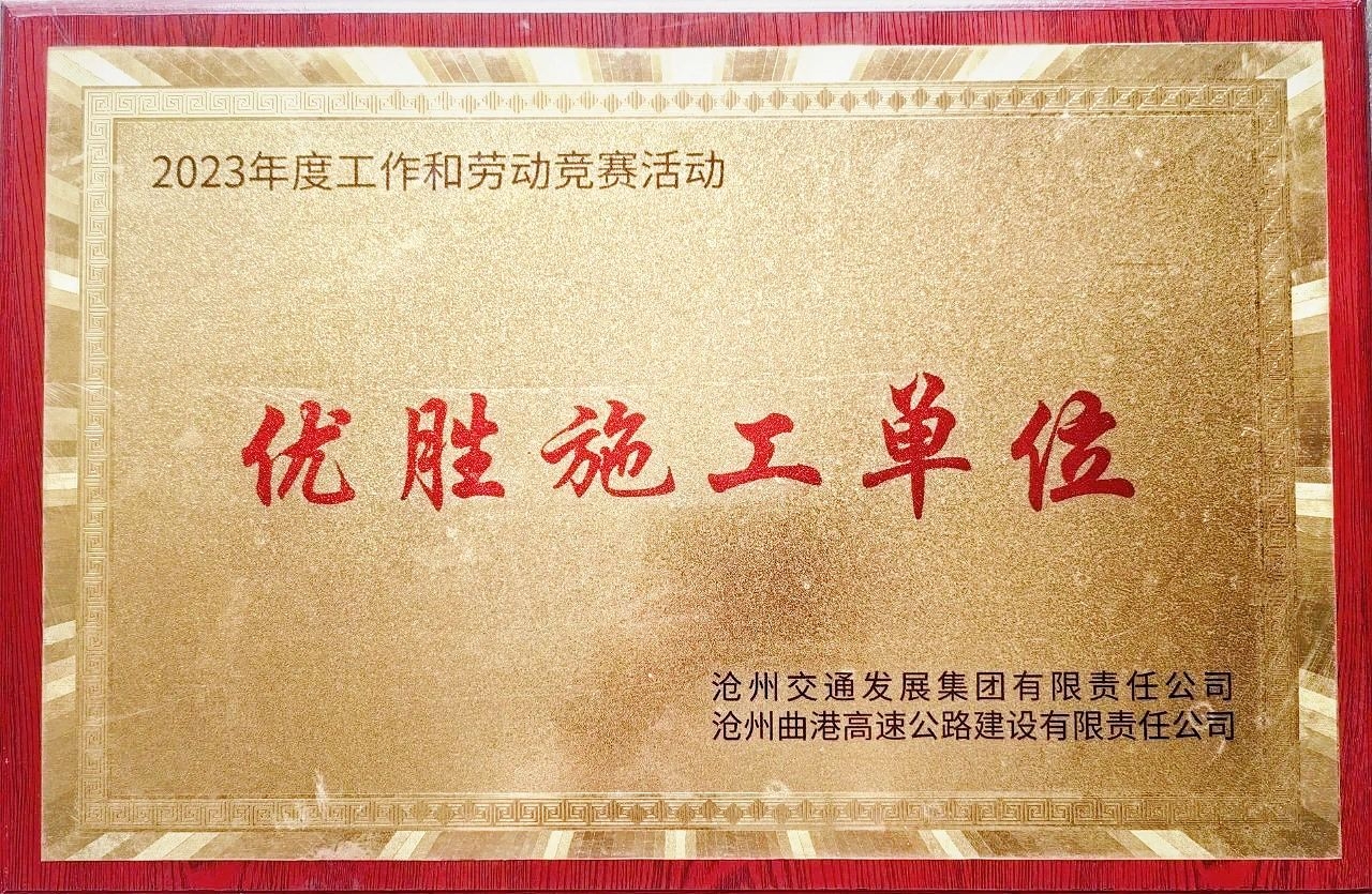 建设期间,项目部连续两年在项目公司劳动竞赛活动中荣获“优胜施工单位”“突出贡献单位”“安全管理先进单位”“桥梁工程优胜单位”等荣誉称号,取得了2024年度“主体清零”活动全线第二名的良好成绩,得到了建设单位和属地政府的高度评价,在河北省公路建设市场擦亮了金字招牌,树立了良好形象,为持续深耕河北区域市场打下了坚实基础。