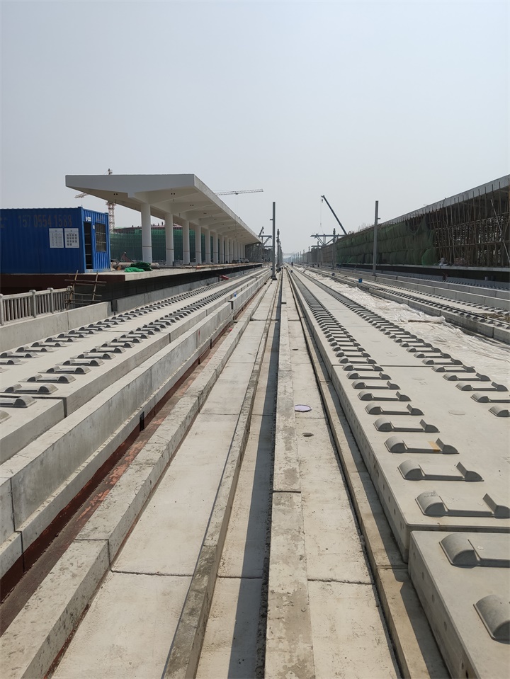 2019年1月,临时接到变更文件的商合杭项目部被打破正常施工进度,原设计寿县车站到发线CRTSⅠ型双块式有砟轨道紧急调整施工方案为无砟轨道,受变更时间较晚影响,此时正线CRTSⅢ型板式无砟轨道、站房单位雨棚等已基本完成施工,施工通道被截断,竖向空间受到极大制约,导致“机械化”无法实施,所有的材料运输和安装均靠人工搬运或者制作简易的工装协助转运,成为制约工期的核心因素。除此之外,双块式无砟轨道结构整体性及横向稳定性强,结构整体平顺性好,对施工工艺与精度有着极高的要求,但施工现场大部分为经验不足的青年员工,成为其二制约进度的技术因素。