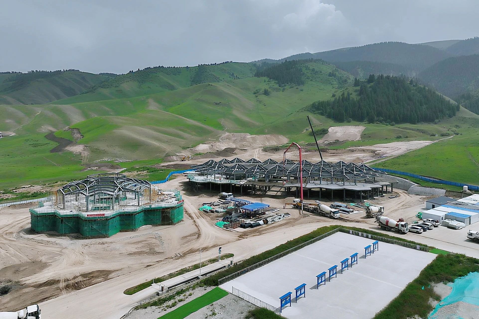 当前,项目运动员滑雪训练中心、服务中心钢结构主体工程已安装完成,维修机库主体施工完成,停车场、蓄水池等附属结构施工正有序进行。下一步,项目部将进一步优化施工组织设计、提升技术管理水平,确保项目按时高质量交付。