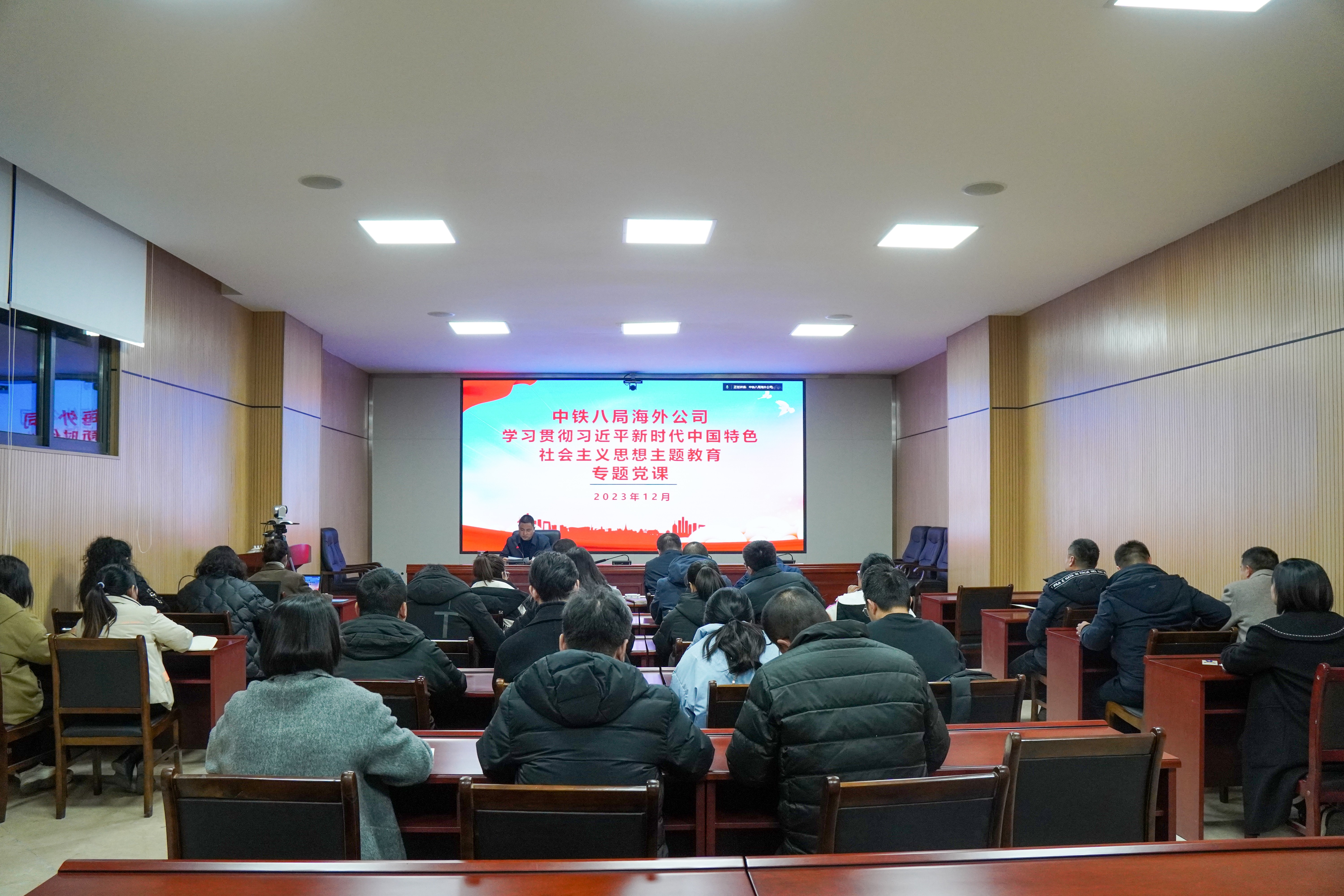 为推动学习贯彻习近平新时代中国特色社会主义思想主题教育在公司走深走实,12月27日,公司总经理何斌以《全面把握习近平新时代中国特色社会主义思想的科学内涵》为题讲授了一堂主题教育专题党课,党课以本部员工现场参加结合境外员工视频连线参加方式开展,共计七十余人参会。