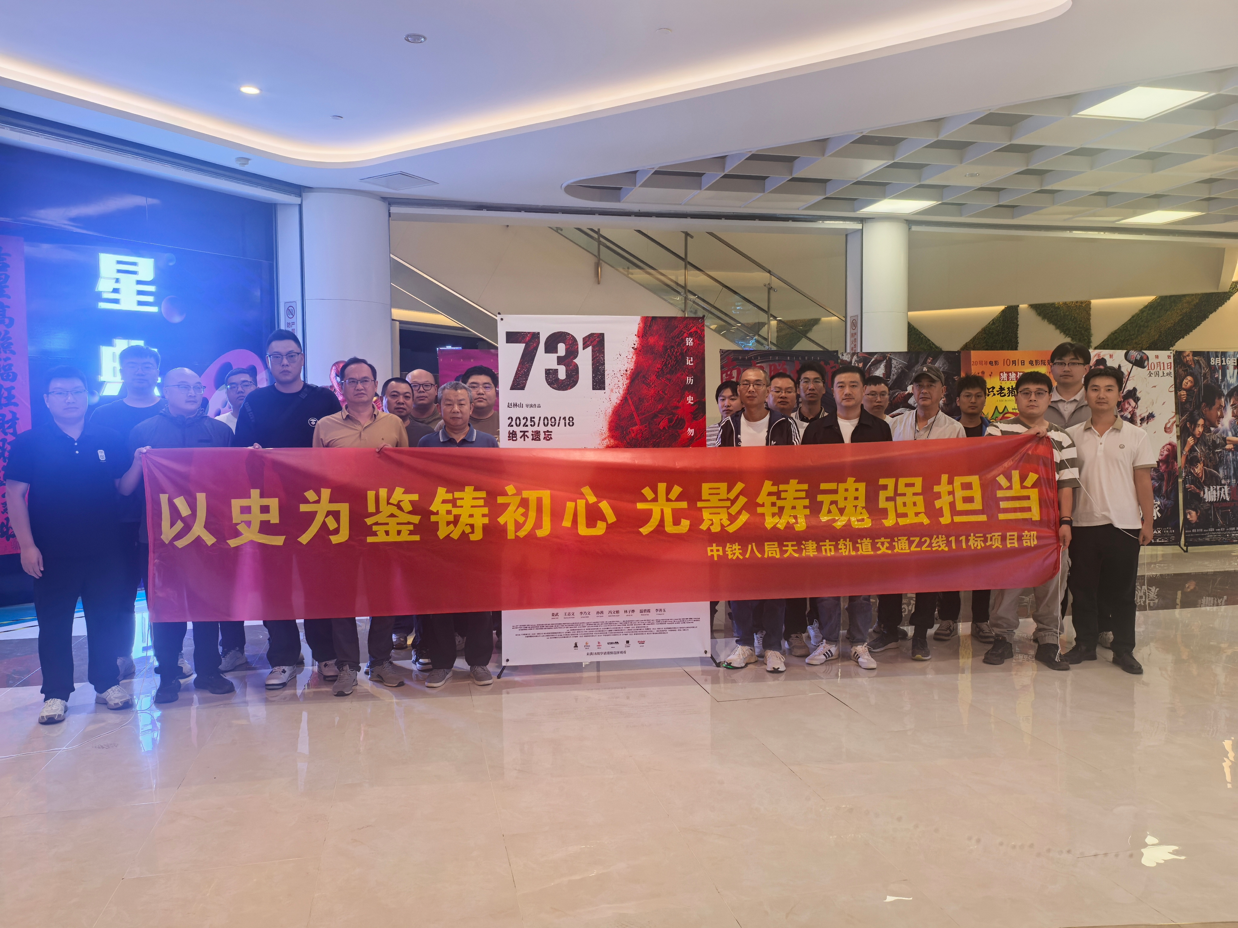 为纪念中国人民抗日战争暨世界反法西斯战争胜利80周年,弘扬伟大抗战精神,汇聚民族复兴力量,9月19日,天津市轨道交通Z2线11标项目部组织25名员工观看爱国影片《731》,以光影为媒回溯历史,以精神为炬筑牢信仰,切实激发员工内心深处的爱国热忱,强化其使命担当意识。