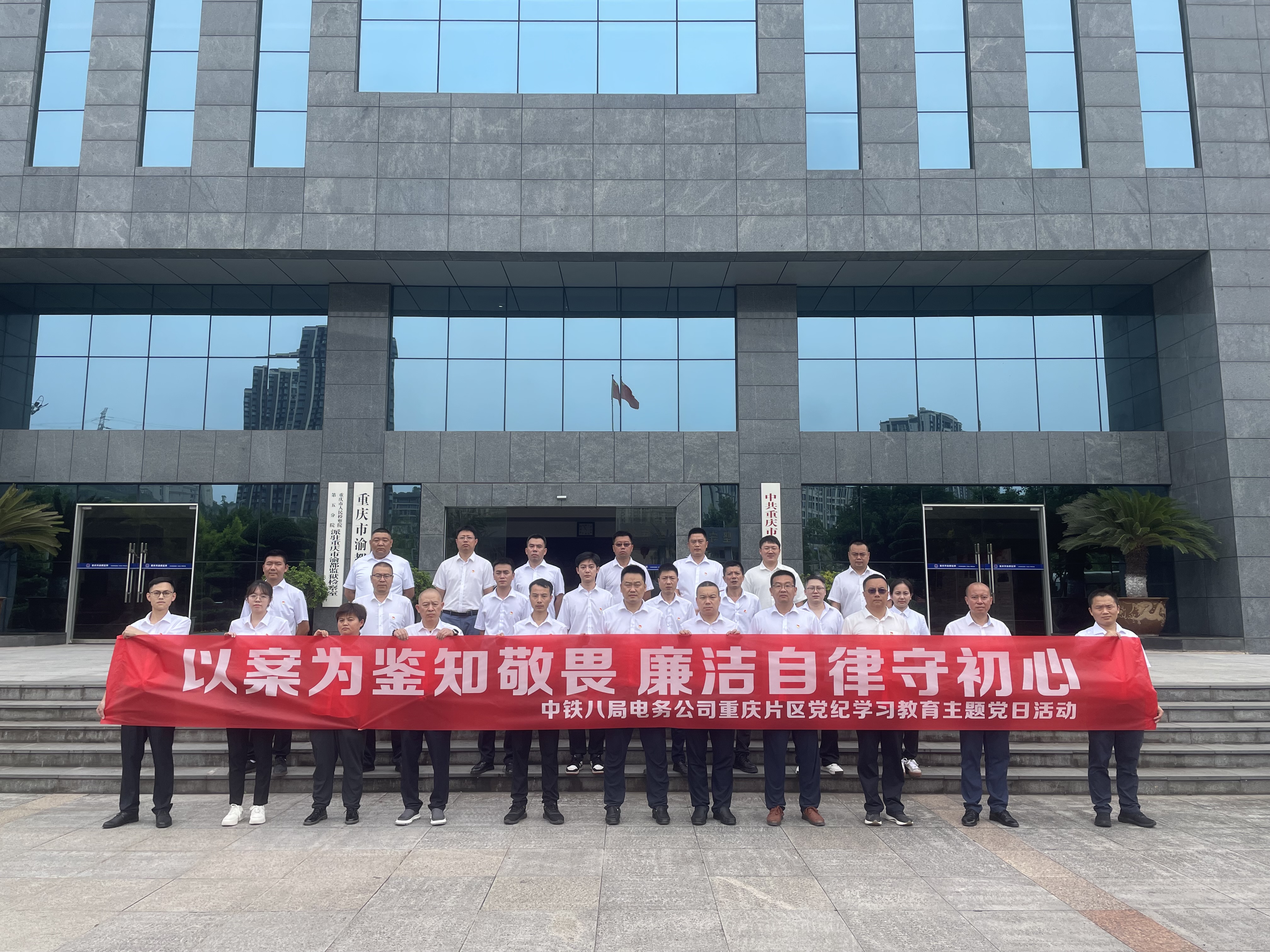 为扎实推进党纪学习教育,切实提高党员干部廉洁从业意识和拒腐防变能力,增强党组织的凝聚力和战斗力,7月9日上午,重庆片区第五项目部党支部和接触网三项目部党支部党员干部共计27人走进重庆渝都监狱,联合开展了“以案为鉴知敬畏 廉洁自律守初心”为主题的党纪学习教育主题党日活动。