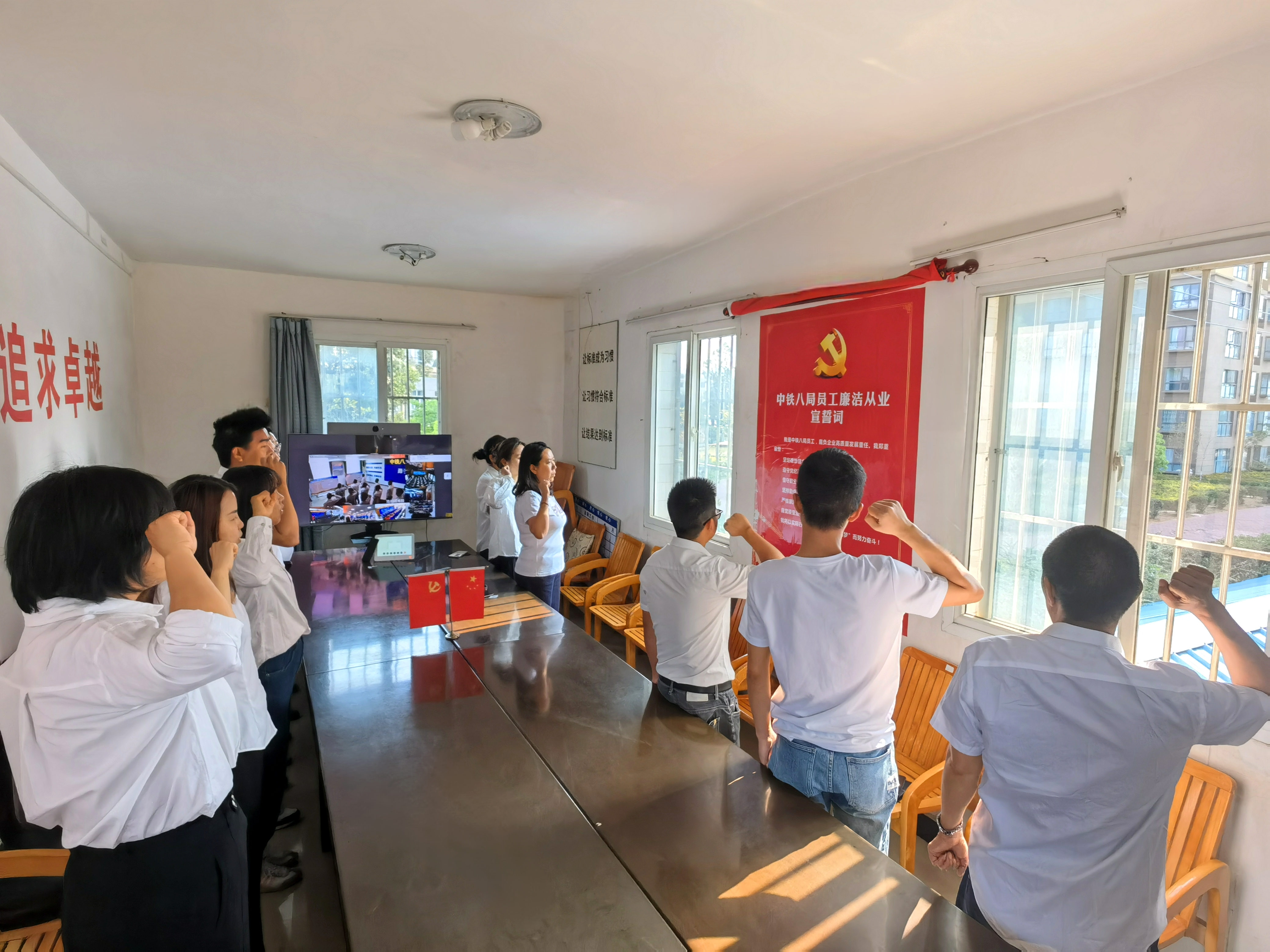 党支部严格按照上级纪委要求,认真落实党风廉政建设和反腐败工作,引导广大党员、干部增强纪律意识、规矩意识,持续纠治“四风”,把纠治形式主义、官僚主义摆在更加突出的位置,做到公正用权、依法用权、为民用权、廉洁用权。一是党支部通过中心组学习会、“三会一课”、周例会等形式组织干部职工51人次认真学习了《关于转发<中央纪委关于交通运输部、国家卫生健康委有关下属单位借培训之名组织公款旅游问题及教训警示的通报>的通知》并进行了自查自纠,未发现项目部有借学习培训之名公款旅游、损公肥私问题。二是党支部在E通群内不定期发送廉洁相关内容,在五一、端午节期间认真落实中央八项规定精神、纠治“四风”有关工作及发送廉洁提醒和短信,并认真组织党员、干部集中学习了《中央纪委国家监委公开通报十起违反中央八项规定精神典型问题》。三是党支部积极组织党员干部及重要岗位人员参加集团公司“我要廉”宣誓活动,全体人员进行了宣誓并签字承诺。除此,党支部在驻地工作区和生活区均张贴了廉洁倡议书。四是党支部书记周勇军为党员、干部上了《加强党性修养,坚持廉洁从政》主题廉洁党课。