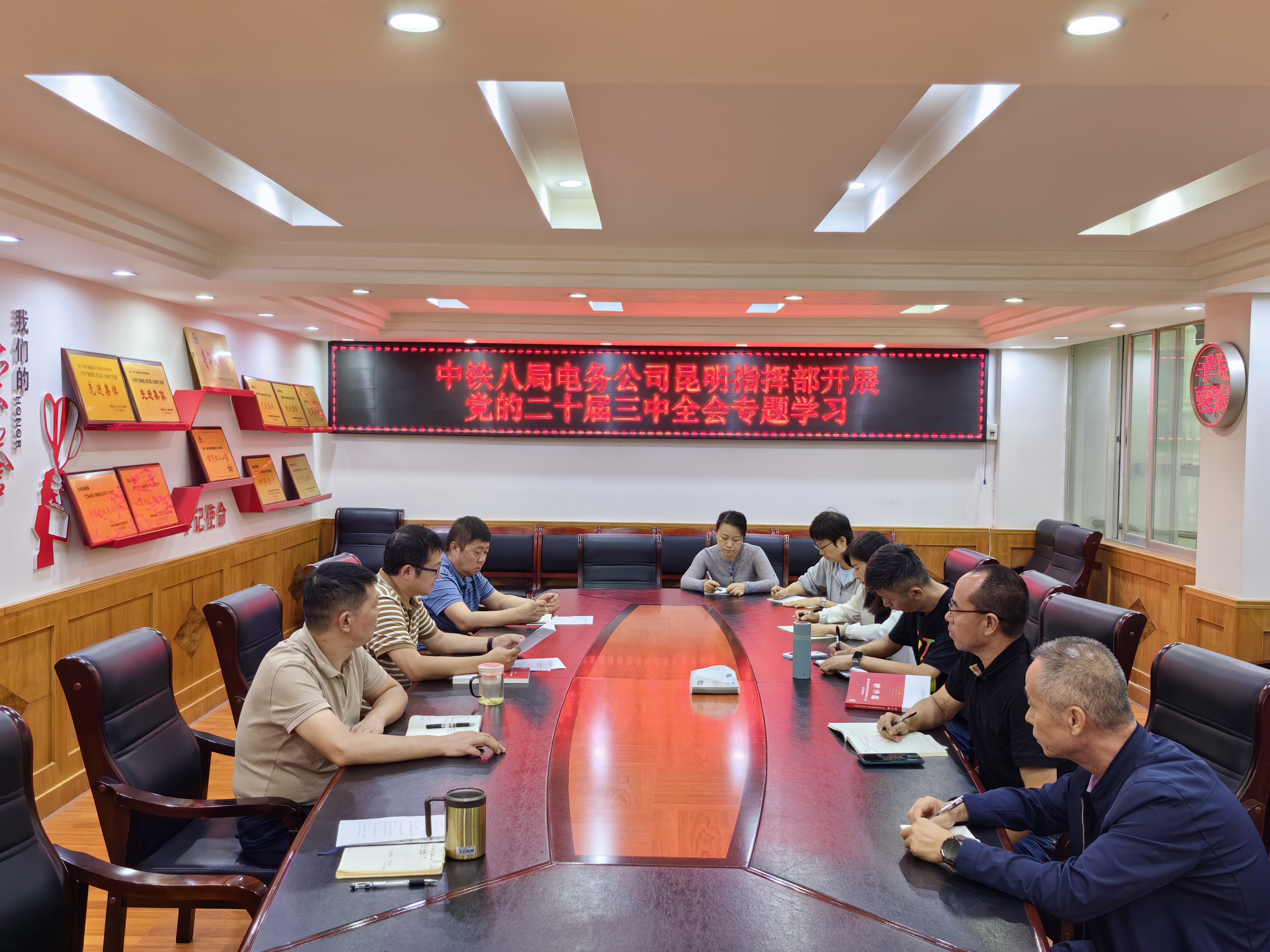 近日,昆明指挥部召开了专题会议,对党的二十届三中全会精神进行学习宣贯。会议要求,一是要深入领会全会精神,认真抓好贯彻落实,主动对标对表,确保上级各项安排部署落实落地,积极探索指挥部发展方式,取得成效;二是要提高政治站位,结合指挥部职能职责和发展实际,找准定位,明确思路任务,制定具体措施,要在经营开发上拿出硬招实招,积极担当作为;三是要持续掀起学习热潮,通过多种方式引导党员干部职工深刻把握进一步全面深化改革的主题,紧盯指挥部重点任务、年度目标,精耕细作、精准发力,确保各项任务目标完成。