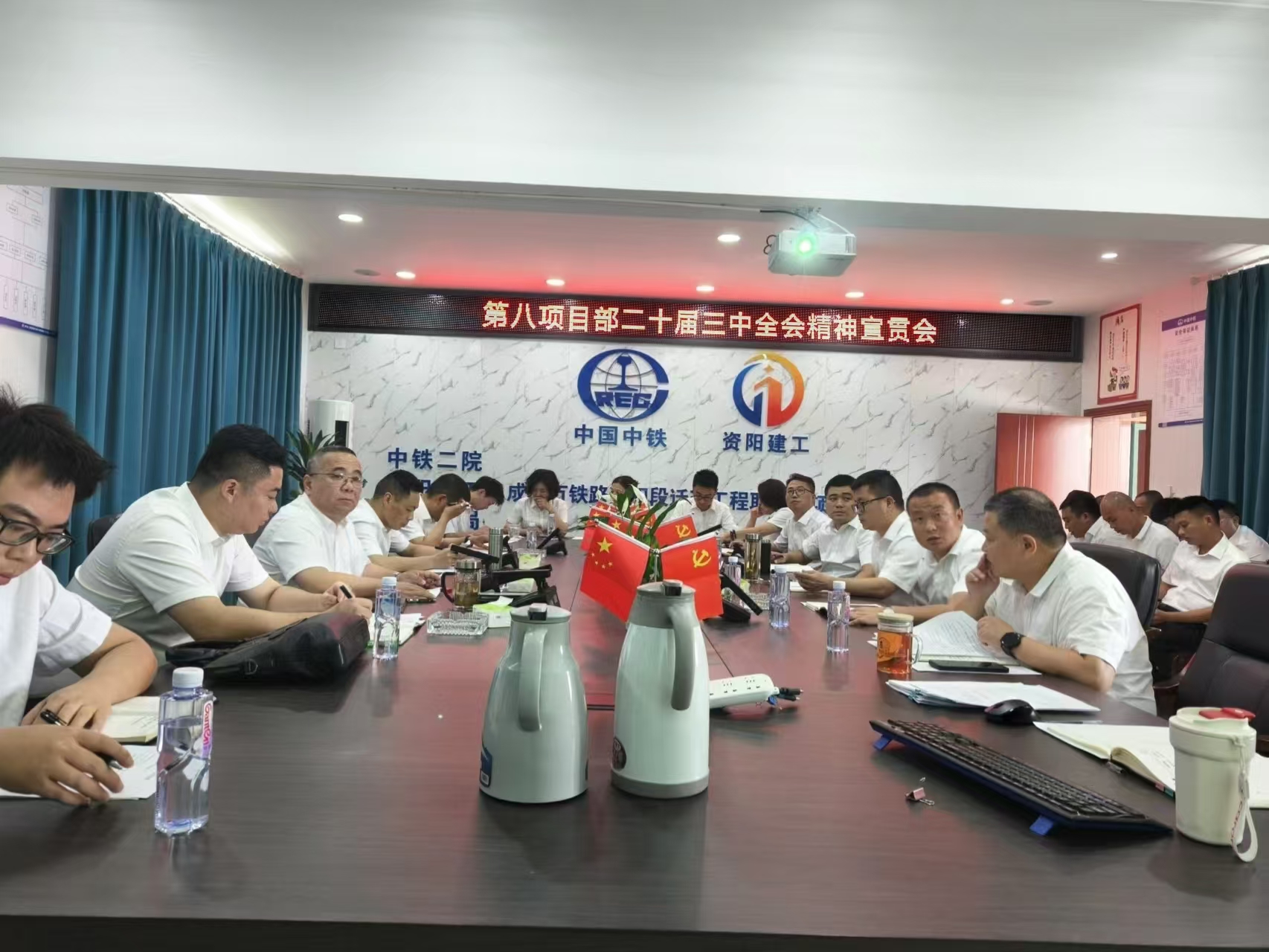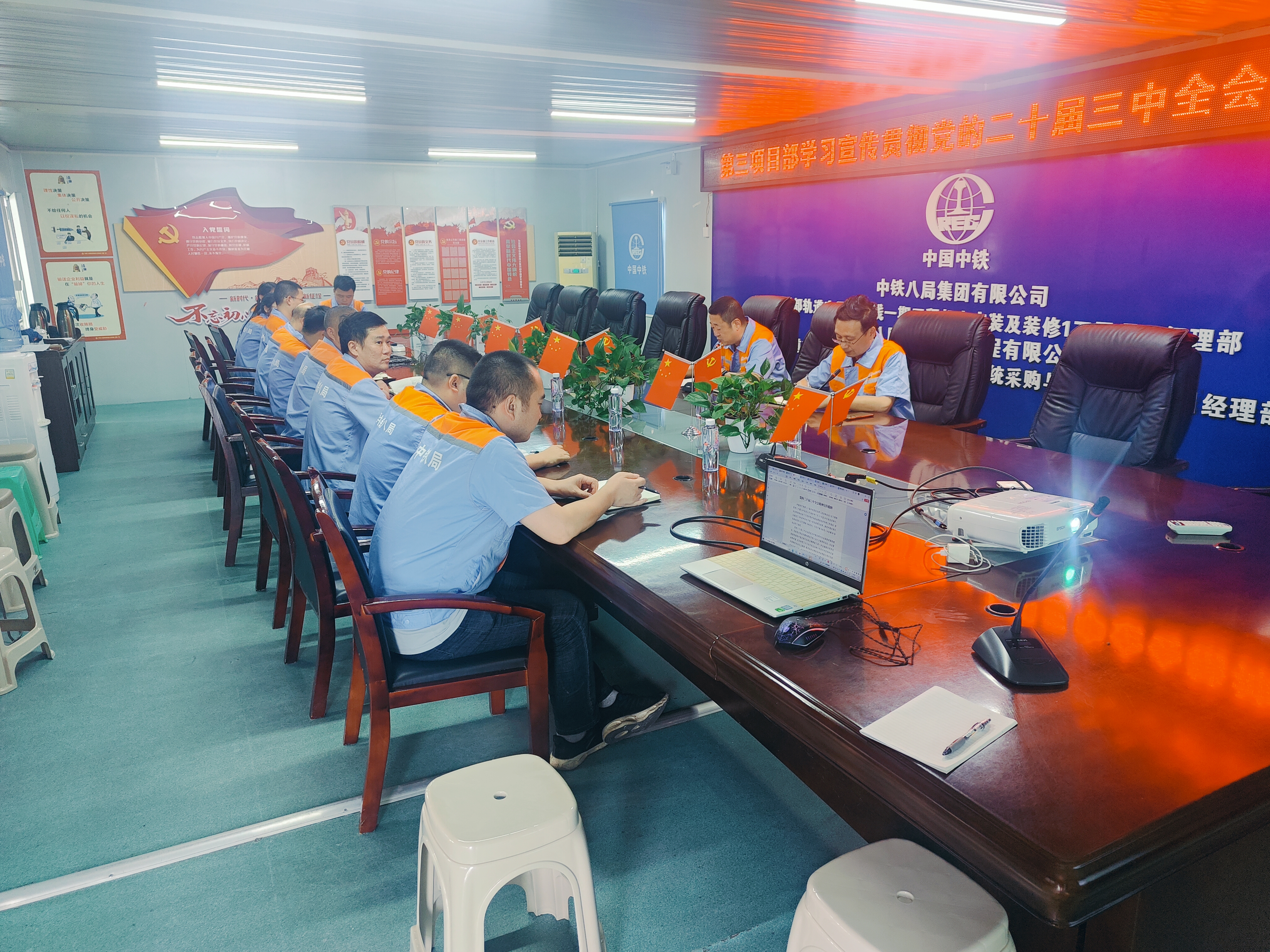第八项目部根据公司党委指示,迅速组织了党的二十届三中全会精神的学习与宣贯活动。在专题学习会上,党支部书记带头对全会公报中提出的“聚焦中国式现代化”“七个聚焦”等核心亮点进行解读,强调“学习好贯彻好全会精神是当前全党全国的一项重大政治任务”,确保每位职工准确理解会议要义。同时,项目部实施“学思践悟”行动计划,将全会精神融入日常工作,强化思想引领,引导职工将全会精神转化为实际行动。