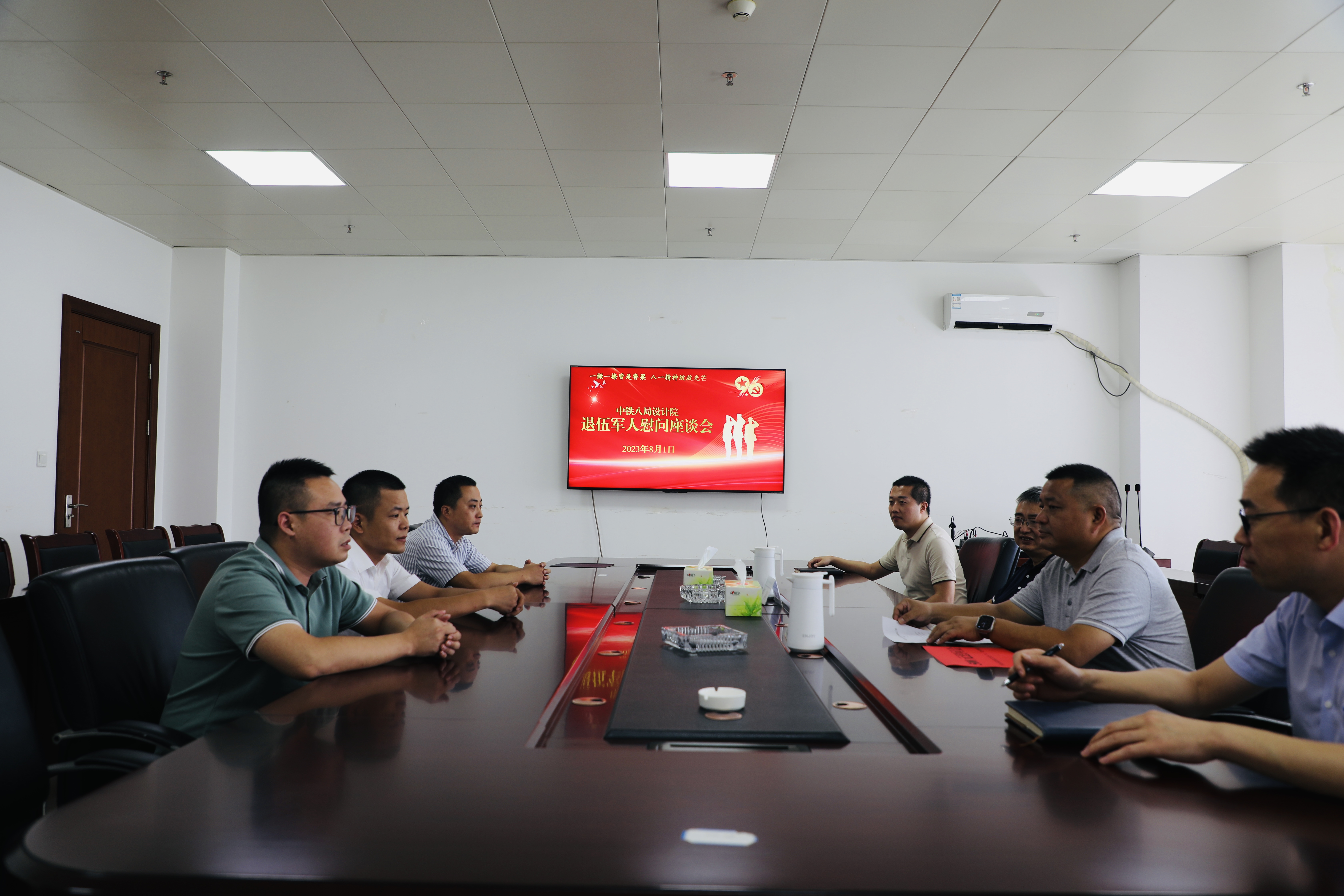 为庆祝第96个“八一”建军节的到来,彰显国有企业拥军优属的责任担当,引导退伍军人和衷共济、扎实工作,营造同呼吸、共命运、心连心的良好企业发展环境。8月1日,设计院组织开展了以“一撇一捺皆是脊梁 八一精神绽放光芒”为主题的退伍军人慰问座谈会,党工委书记闫生平出席并主持会议,副院长、工会主席、纪工委书记彭舸和3名退伍军人及工会全体人员参会。