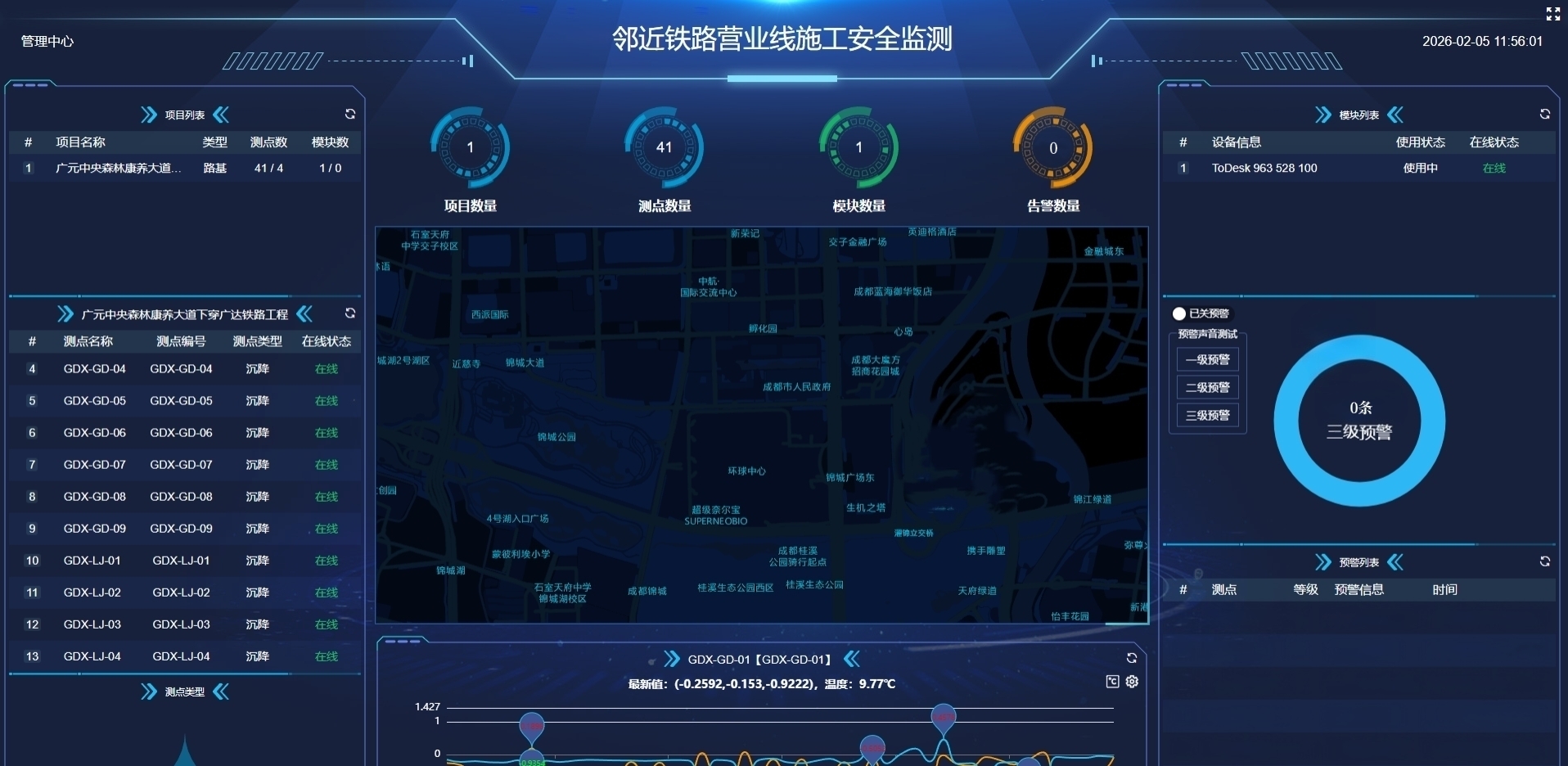 践行综合治理,彰显央企责任担当。设计院积极践行综合治理理念,将监测工作与安全生产专项行动深度融合,聚焦重点项目、关键环节强化现场管控。在广元中央森林康养大道下穿广达铁路工程第三方监测工作中,依托AI风险预警模型全程超前盯控,精准捕捉轨道沉降异常苗头并提前触发安全预警,第一时间联动各参建单位启动协同处置机制。管理团队通过加密观测频次跟踪隐患发展、指导施工单位优化施工工艺、联合制定专项应急方案,最终在铁路“天窗点”完成线路精准调整,成功化解安全风险。此次应急处置因专业高效获成都成铁工程项目管理有限公司通报表扬,获标准化评分加5分奖励,相关预警分析报告被列为模板,要求成都局集团范围内各监测单位对照借鉴学习。