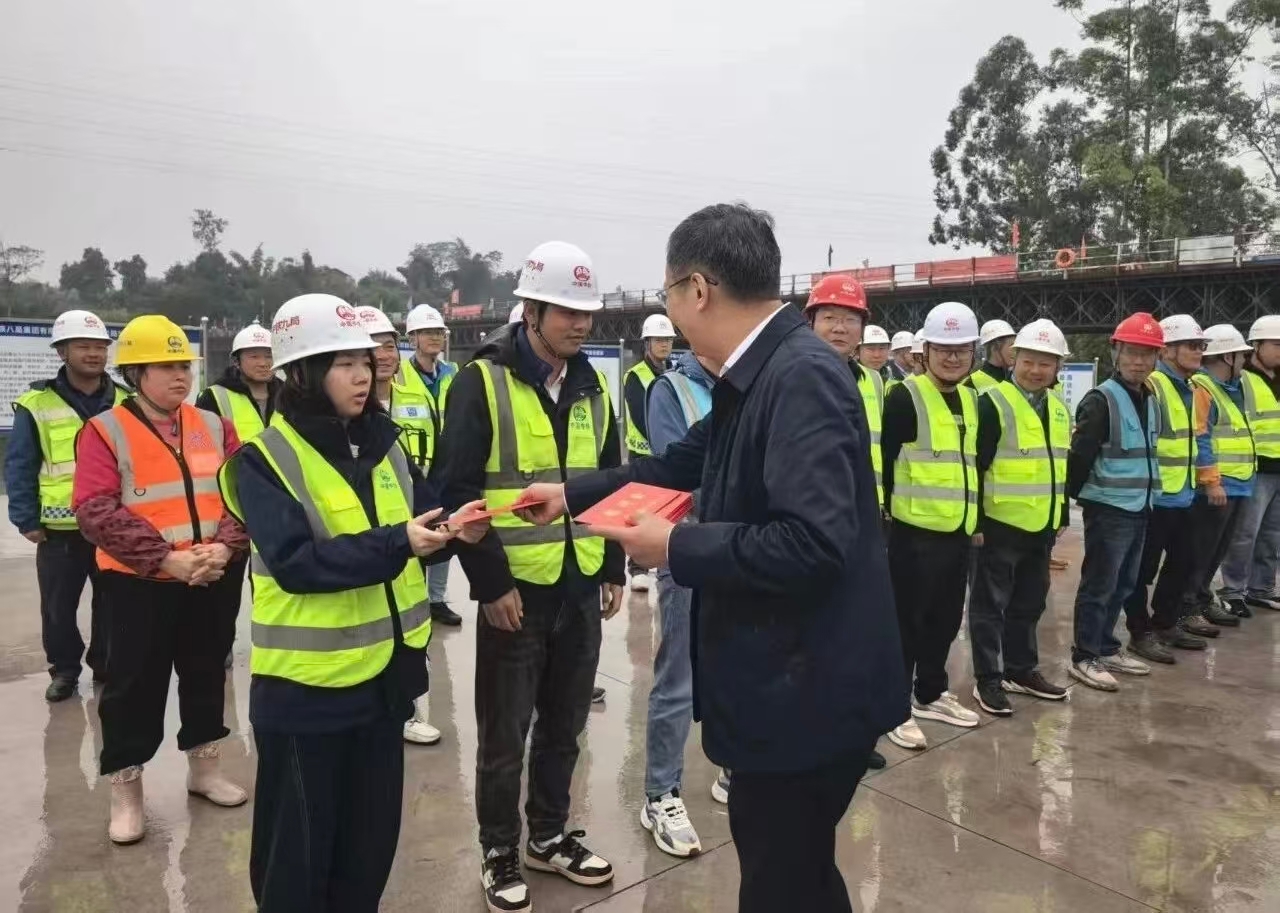 龙腾鑫一行深入自永高速SG1标段釜溪河大桥施工现场,慰问冒雨施工的项目一线建设者,为他们送上慰问金。龙腾鑫详细了解项目施工进度、安全生产保障及员工生活情况,认真听取项目建设难点与需求,对中铁八局自永高速项目全体参建人员克服挑战、全力推进项目建设的担当精神给予高度肯定。要求项目部要切实把员工关怀落到实处,既要科学统筹施工安排,保障项目建设高效推进,也要时刻关注员工需求,让大家感受到“娘家人”的温暖。