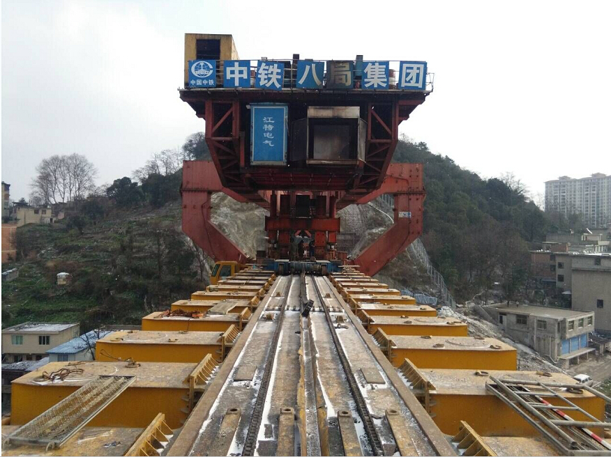 长昆线西段架桥,运梁作业最长距离达19km,因运梁通道上隧道和施工机具多,需要专人徒步监控运输过程,运抵终点需耗时4个多小时;架桥作业时,作业人员悬停高空,最高作业点距地面达72m,对精神上、体力上都是极大的考验和挑战。
