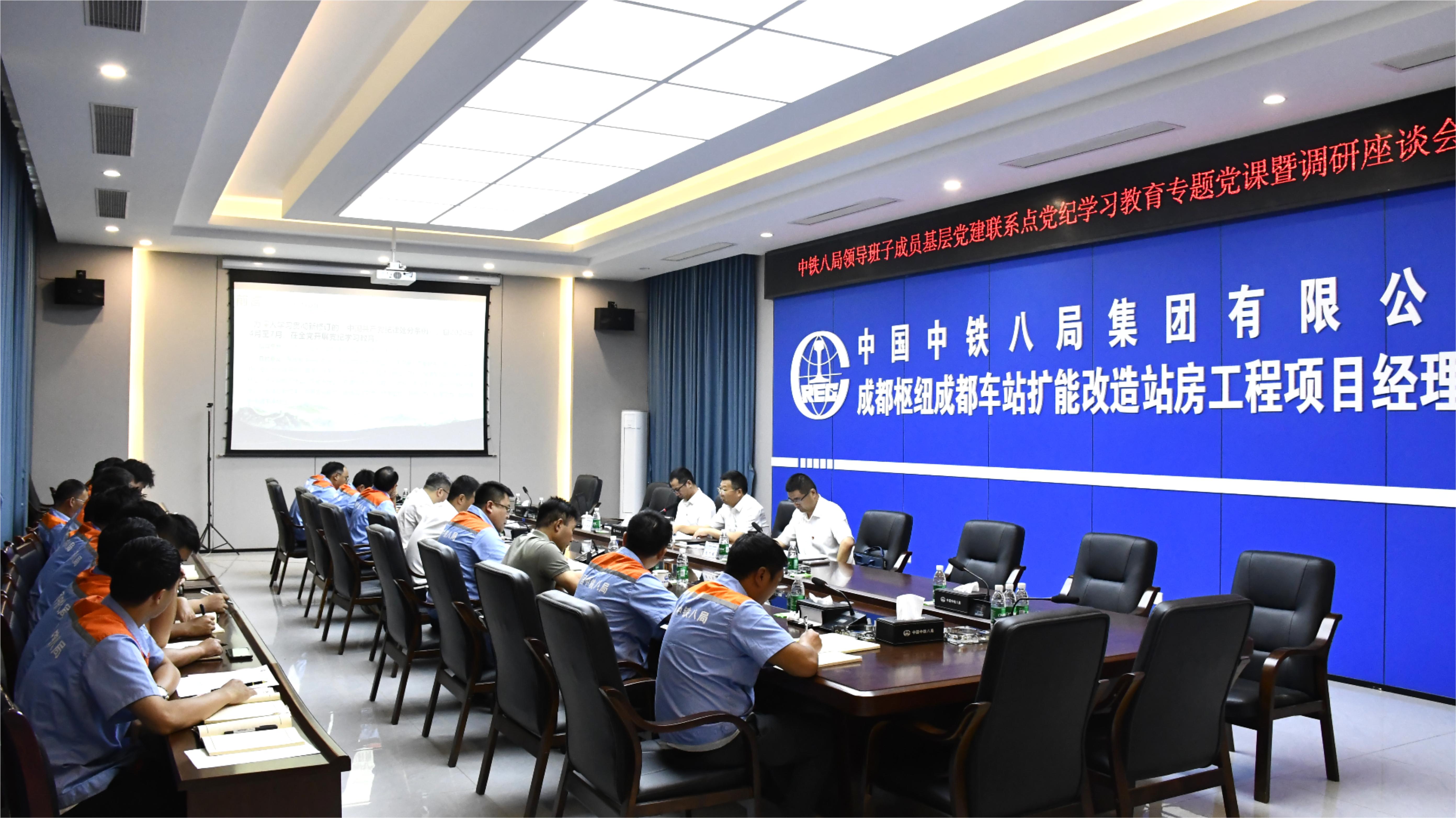 7月16日,集团公司党委常委、纪委书记李家标到党建工作联系点——集团公司成都车站站房项目部讲授党纪学习教育专题党课,并开展调研、慰问工作。集团公司纪委副书记张大斌、纪委综合室副主任(主持工作)王智明,公司党委书记、执行董事许涛,党委副书记、纪委书记、工会主席梁冰及项目部全体党员、入党积极分子、班子成员、各部室负责人共计30余人参加。