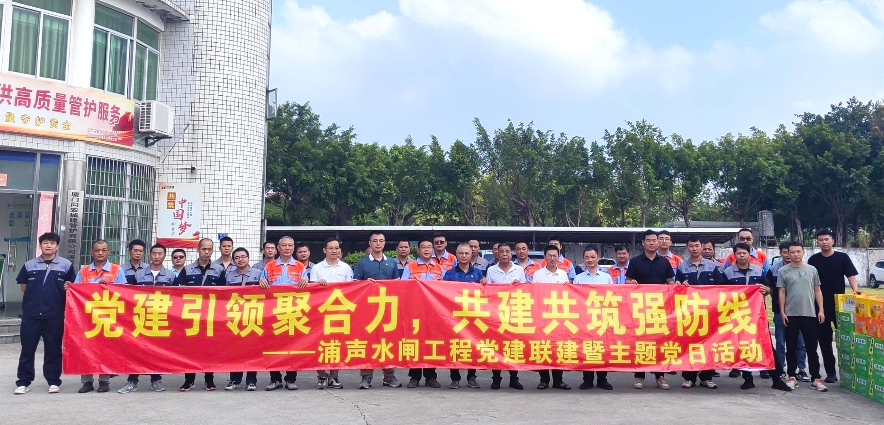 8月6日,浦声水闸工程项目临时党支部联合中共厦门市同安区水利建设中心党支部委员会前往瑶江橡胶坝开展“党建引领聚合力,共建共筑强防线”党建联建主题党日活动。