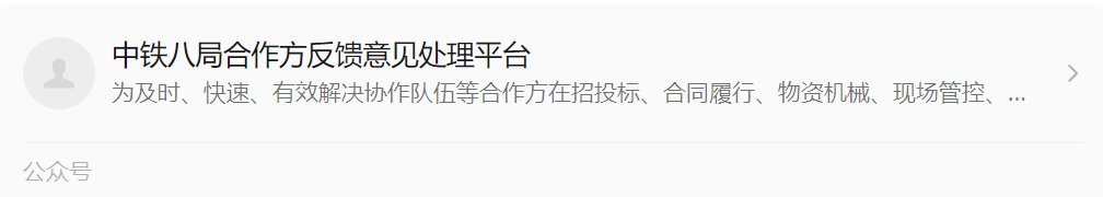 回答:“平台”是一个从中铁八局集团层面收集项目合作方问题和意见,由相关主责部门负责推动问题解决的工作机制,以“中铁八局合作方反馈意见处理平台”微信公众号为主要载体。“平台”为各合作方反映问题提供了畅通的渠道,作为中铁八局官方平台,以更高层次、更大力度推动项目合作方关心关切问题得到及时解决和处理。